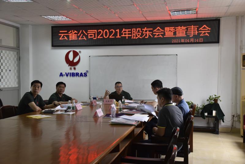 當日上午,佛山市云雀振動器有限公司董事長劉袁平邀請與會人員考察工廠,并詳細介紹了公司的業(yè)務(wù)經(jīng)營、文化理念、人才隊伍建設(shè)和企業(yè)核心競爭力等情況。考察完畢,云雀公司召開了2020年度股東會暨董事會。機械公司總經(jīng)理孫斌代表股東方,副總經(jīng)理崔旸與資產(chǎn)審計法務(wù)部部長李志新作為董事出席會議。云雀公司董事長劉袁平在會上做了經(jīng)營管理報告,回顧了2020年公司運營及疫情防控工作,并就公司經(jīng)營成果做了詳細分析,同時介紹2021年發(fā)展規(guī)劃,以及對股東方天津機械進出口有限公司的大力支持表示感謝。